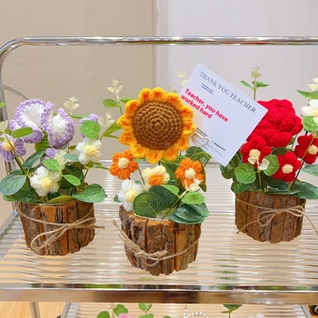 Nueva gran oferta maceta de ganchillo hecha a mano girasol decoración del hogar regalo para el Día DE LA MADRE decoración del banquete de boda